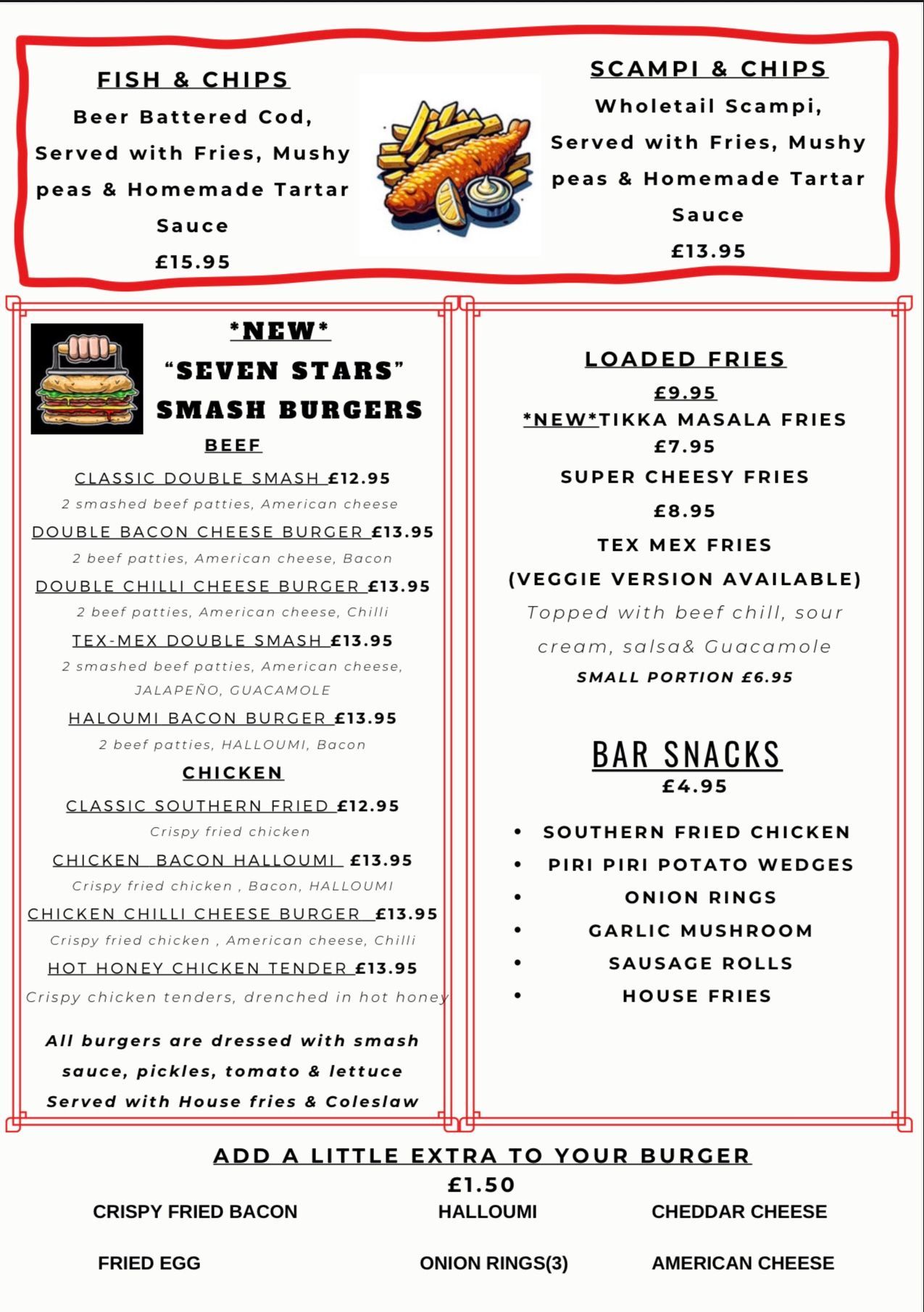 Seven Stars is a traditional English pub serving top quality food, selected spirits and liquor in a unique setting. Our riverside garden offers an outdoor area to relax as well. Wind down and enjoy the atmosphere of our premises coupled with an extensive menu serving everything from Sirloin steaks to Calamari. Our selection of wine comprises of some of the best Pinot and Sauvignon Blanc.